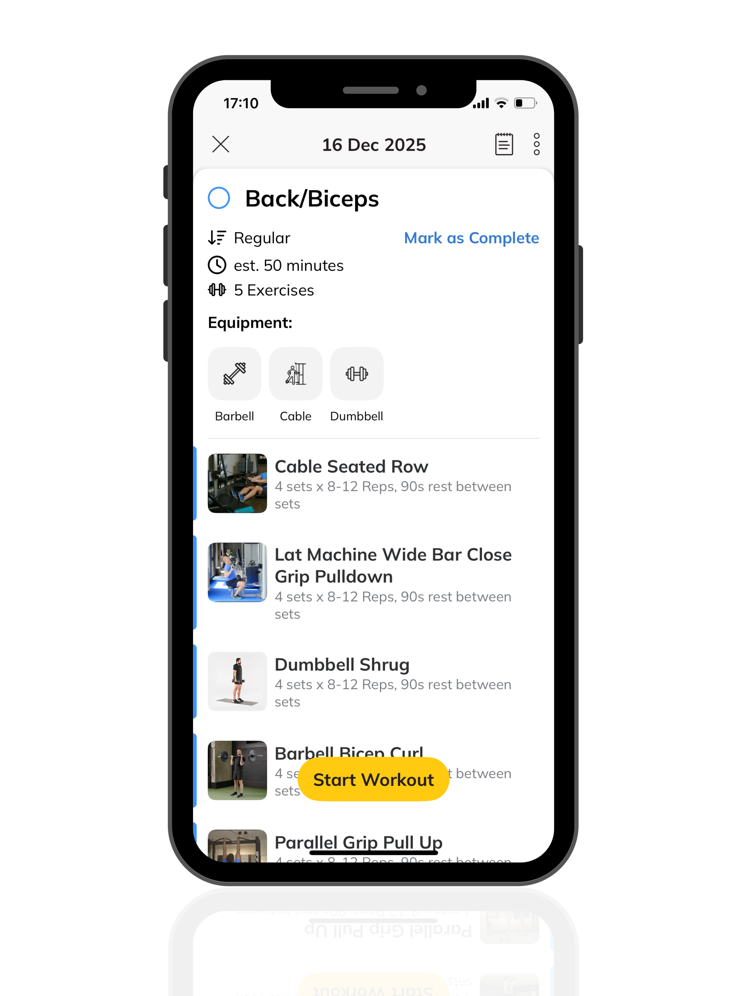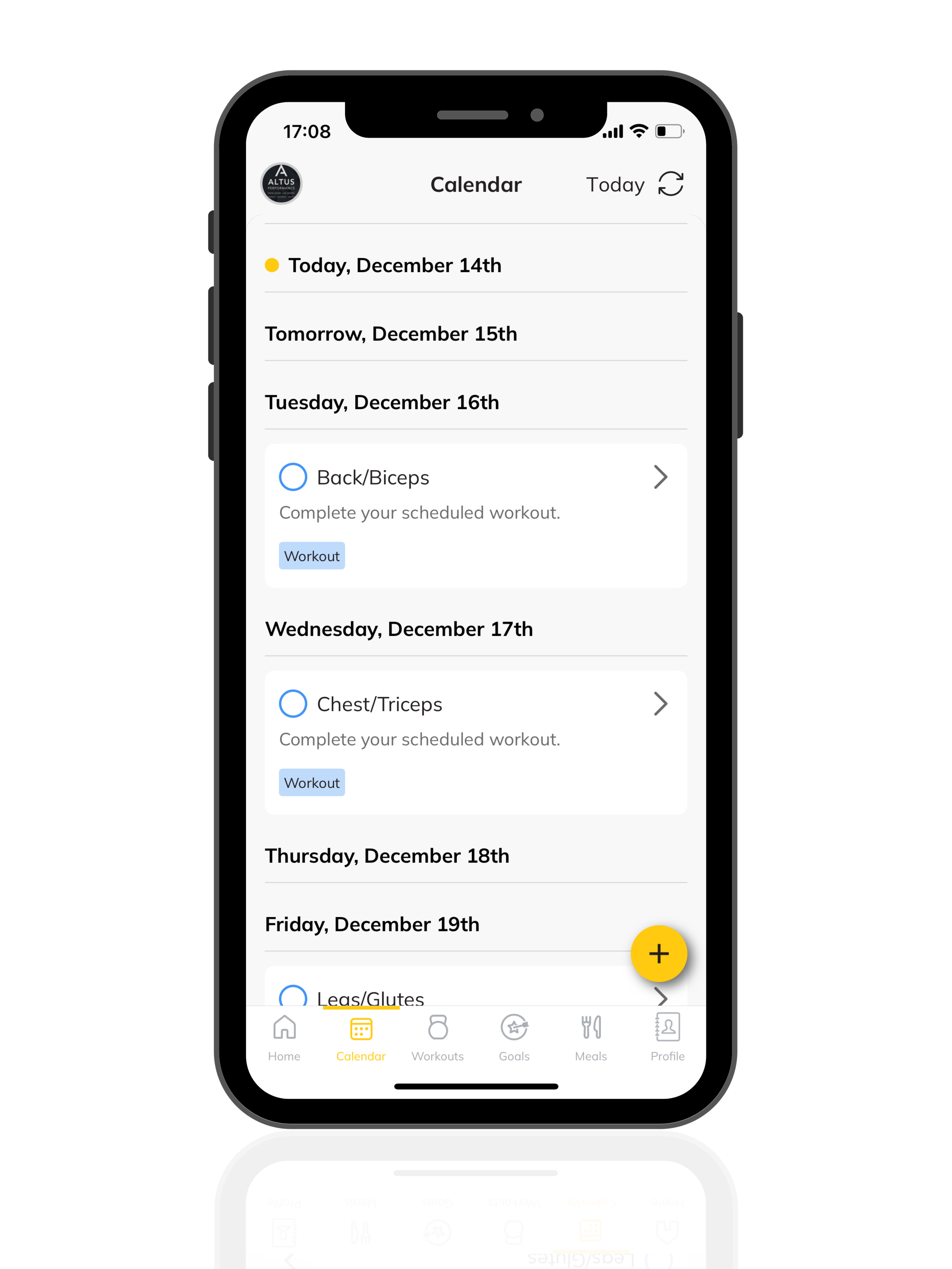 The Altus App is your central hub for coaching, all workouts, check-ins, progress tracking and communication run through here. It seamlessly connects to your smart devices and nutrition trackers, giving your coach real-time insight into your training, recovery and daily habits.